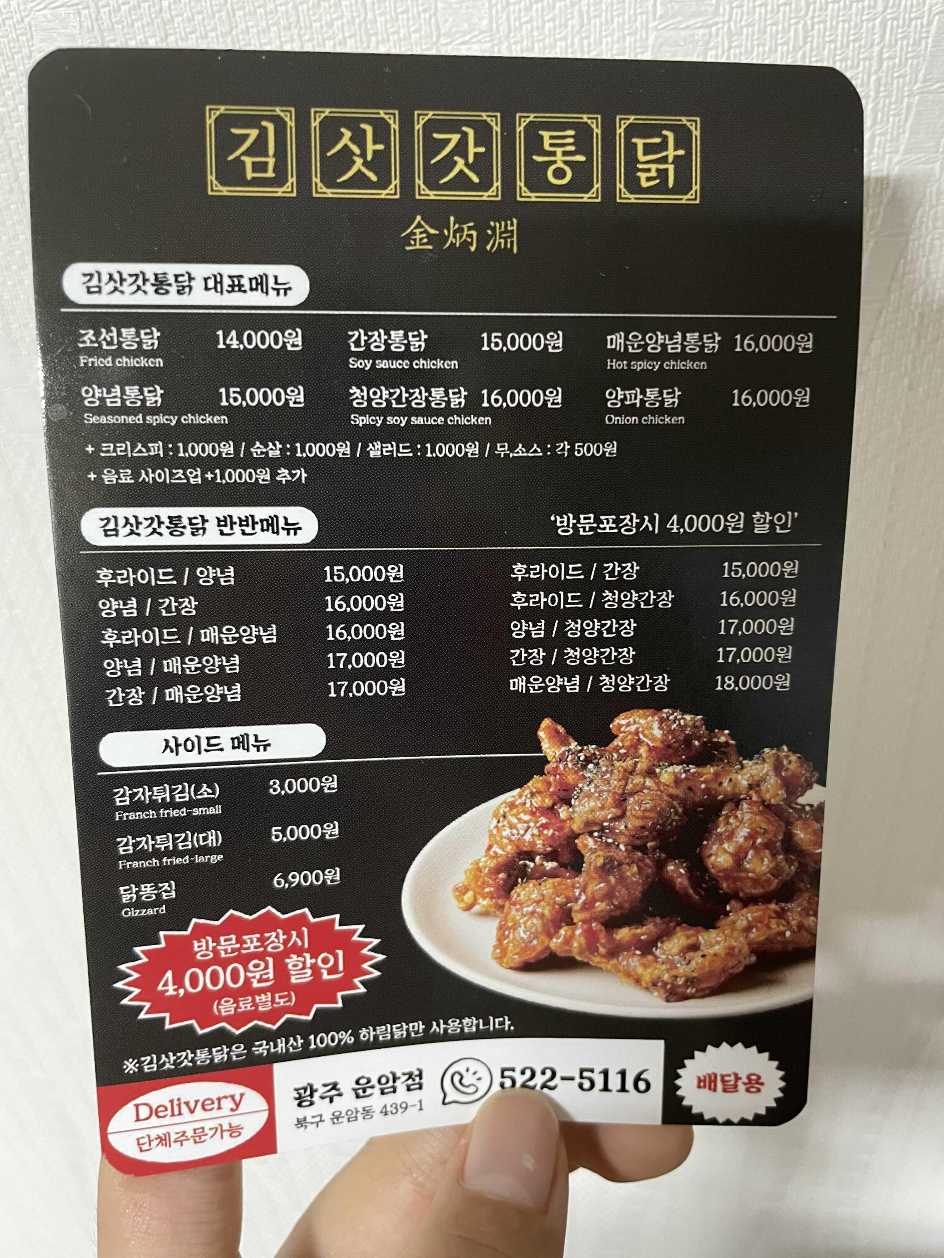 김삿갓통닭/김삿갓치킨/가성비갑치킨/포장할인/감자튀김